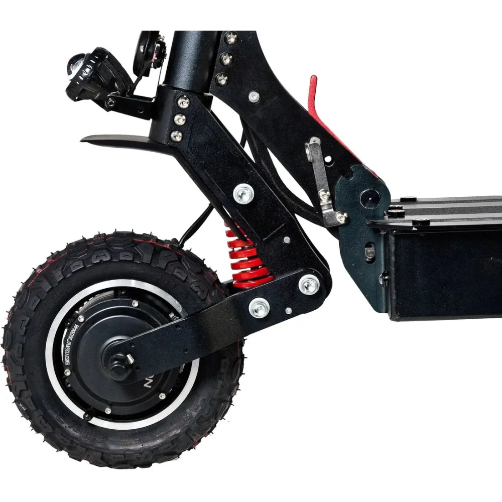 Электросамокат рассчитан на подростков и взрослое поколение. Внедрение современных инноваций и улучшенные характеристики вызывают интерес у продвинутых райдеров. Техника оснащена мощным двигателем 2400 Вт. Производитель позаботился об усовершенствовании показателей скоростных характеристик. Модель стремительно набирает максимальную скорость благодаря наличию полного привода. Электросамокат изготовлен из прочной стали и износостойкого полимера, при эксплуатации долго сохраняет свои первоначальные характеристики. Емкий аккумулятор быстро заряжается, продолжительно сохраняет заряд при движении.