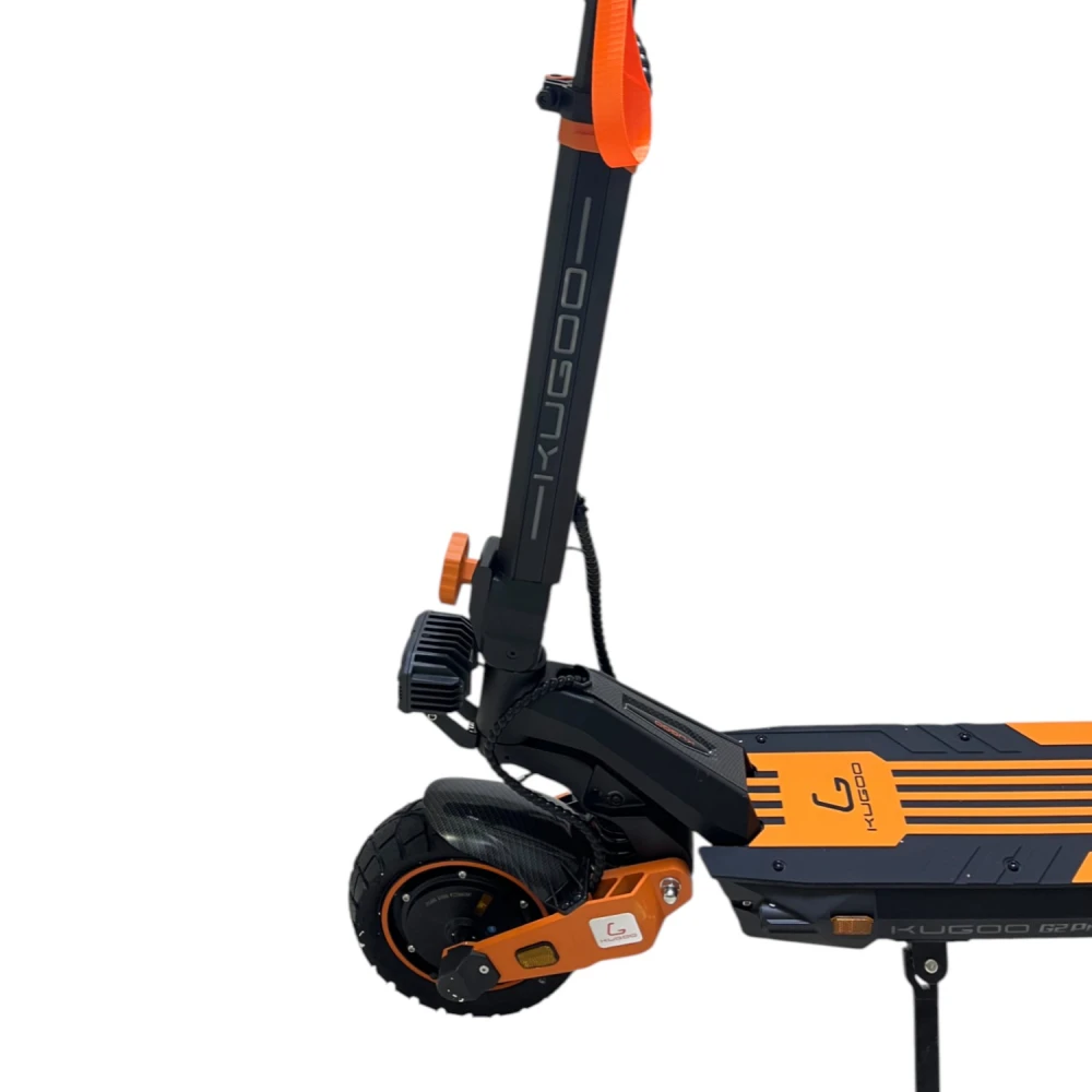 Электросамокат Kugoo Kirin G2 Pro Max оснащен двумя мотор-колесами по 1000W каждый, что обеспечивает мощный и плавный привод. Полный привод гарантирует отличную устойчивость и маневренность во время движения.