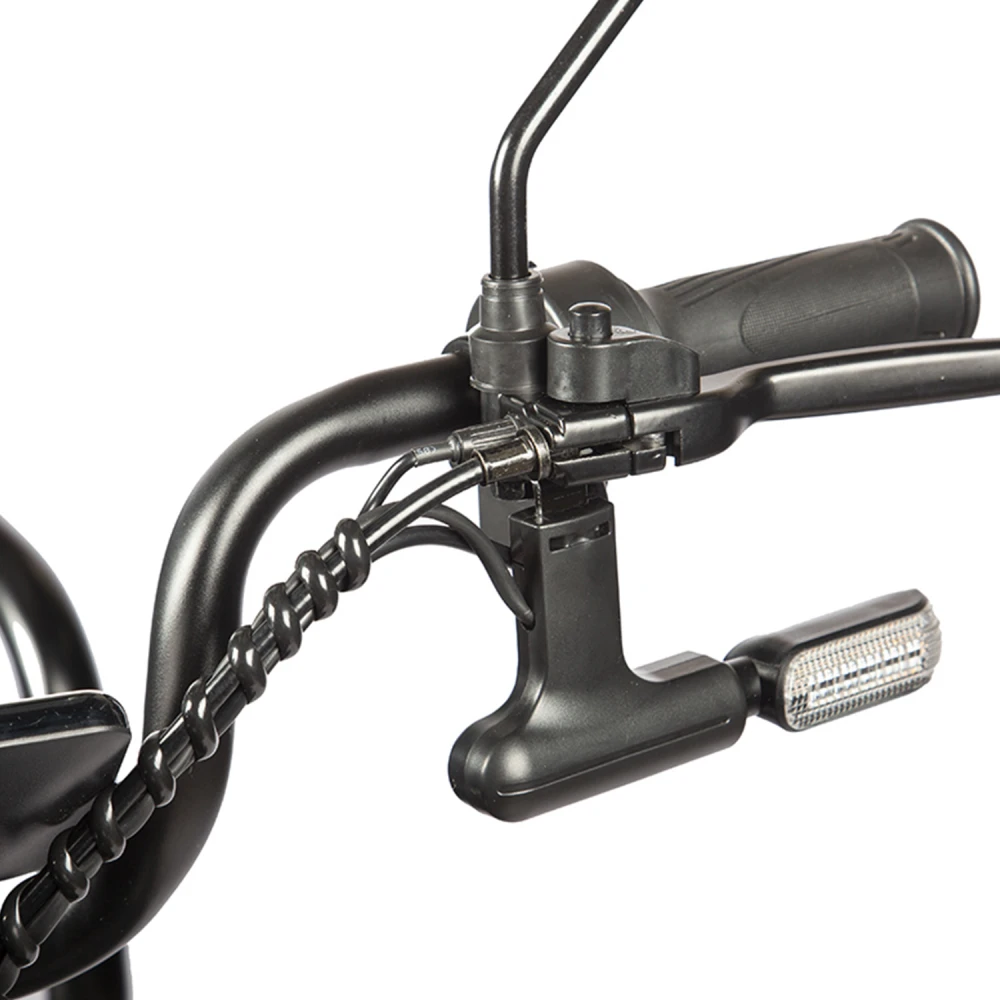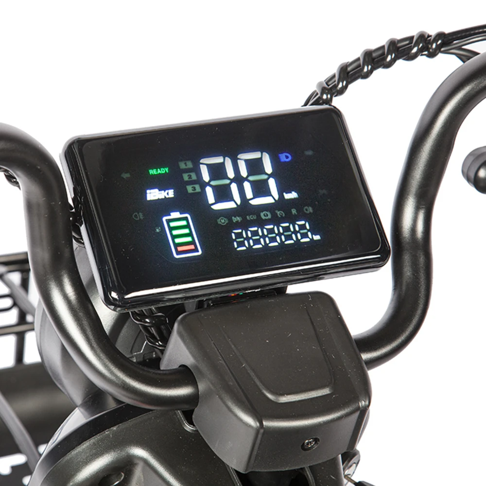 Наличие зеркал заднего вида, современной светодиодной фары, передней и задней барабанной тормозной системы делает безопасным передвижение в вечернее и ночное время. Рулевая часть оснащена необходимым для контроля функционалом, позволяет контролировать скорость и заряд АКБ. Максимальная скорость при мощности 800 Вт составляет 25 км/час, достаточная для комфортного время провождения. Одного заряда батареи хватает на 45 км пути.