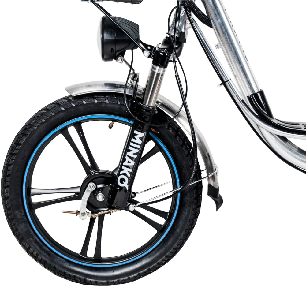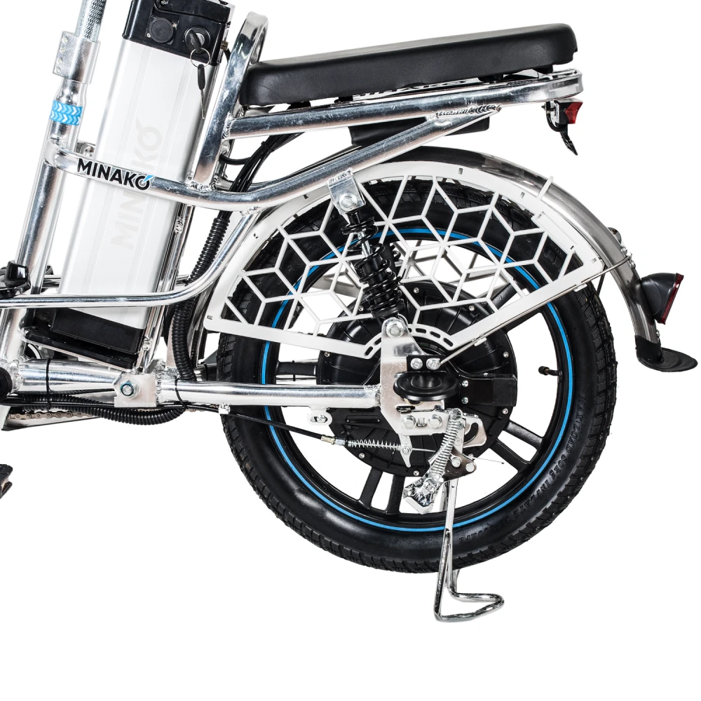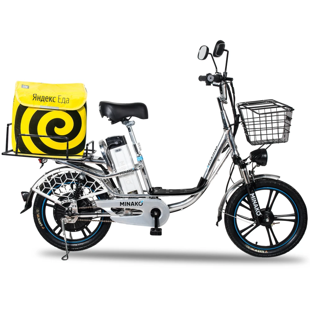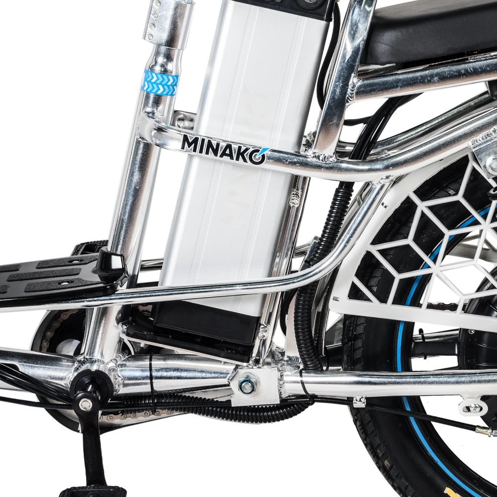 Немаловажным достоинством велогибрида Minako V8 Pro является его комплектация. Здесь, в отличие от других брендов, велосипед сразу поставляется с зеркалами заднего вида, подножкой, корзинкой и багажником для перевозки различных вещей.