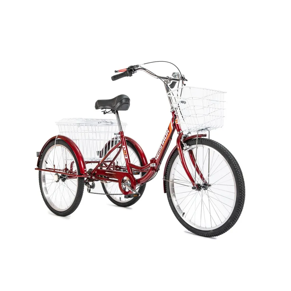 Велосипед изготовлен из высококачественных материалов, при эксплуатации долго сохраняют свои первоначальные характеристики. Производитель акцентирует внимание пользователей на усиленных корзинах. Наличие запирающего замка позволяет защитить грузы от кражи. Рама универсальной формы, низкая, для комфортной посадки пользователей. Мгновенно останавливаться в непредвиденных ситуациях возможна благодаря качественной тормозной системе. Накладки на руль резиновые, имеют рифленую поверхность для комфортного размещения рук и лучшего сцепления.